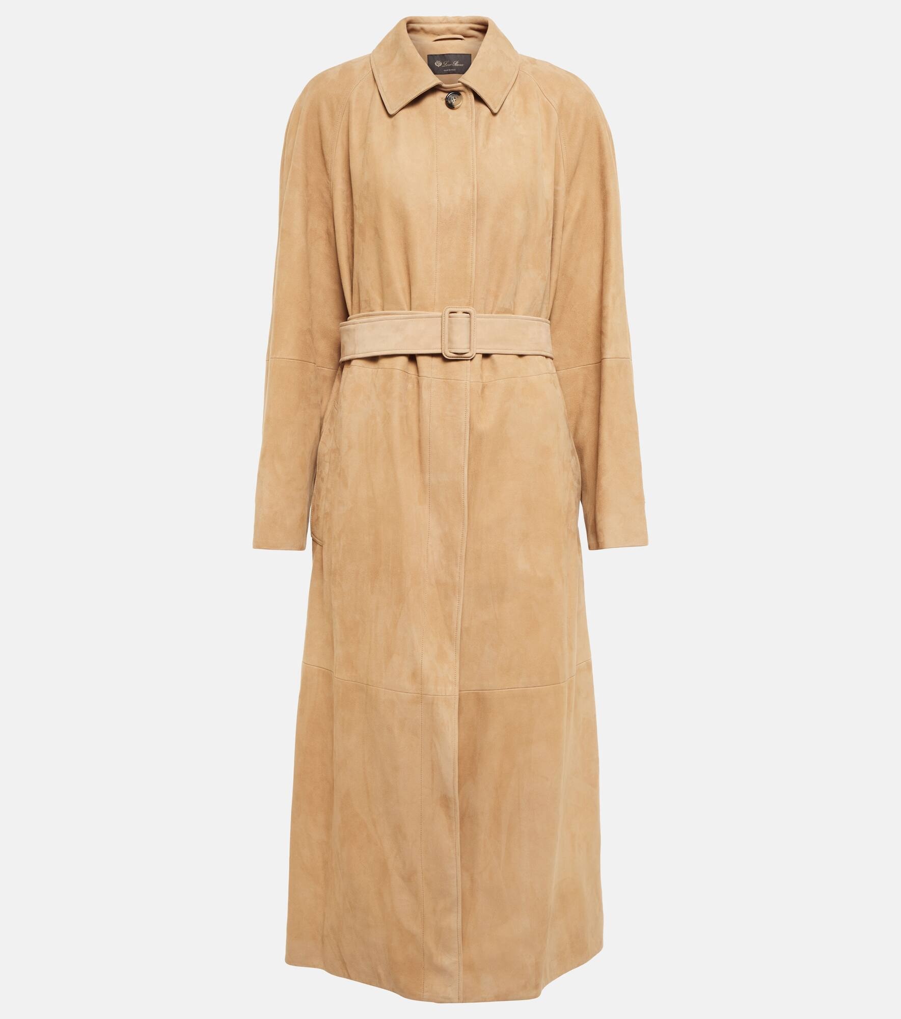 For unmatched quality and timeless elegance, look no further than Loro Piana's Brenner coat. It's made from smooth suede goatskin with luxurious silk lining and trench coat-inspired features, such as raglan sleeves, belted cuffs, and a classic waist belt. - material: 100% goat leather - lining: 100% silk, fully lined - care instructions: specialist clean - side slit pockets - concealed buttoned front - Made in Italy - buttoned sleeves - detachable belt - Designer colour name: Caramel Toffee - Runs large, please see Size & Fit tab size & fit - Fits large to size - we recommend trying one size smaller - Loose fit, comes with belt - Mid-weight material - The model seen in the picture is 178cm-5'10" and wearing a size IT 38