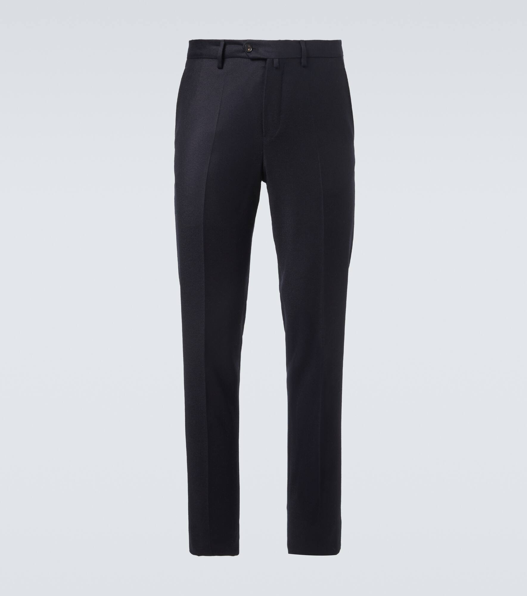 Product Details - Material: 95% wool, 5% cashmere - Care instructions: dry clean - Made in Italy - Designer color name: Royal Blue Melange - Item color: blue - Hem: unfinished (ready for alteration) - Lining: 60% acetate, 40% viscose - Pocket lining: 65% polyester, 35% cotton - Item number: P01069075 Size & Fit - True to size - Non-stretchy fabric - Straight leg - Unhemmed for tailoring - The model in the picture is 185cm-6'1" and wearing a size 50