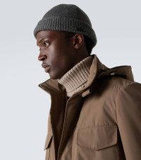 Product Details - Material: 100% cashmere - Care instructions: dry clean - Made in Italy - Designer color name: Grey Melange - Item color: gray - Lining: 64% cotton, 36% polyester - Contains non-textile parts of animal origin - Material II: 100% polyurethane - Details: 100% deer leather - Trim: 100% cashmere - Item number: P01069104 Size & Fit - Circumference size S 56cm-22" - Circumference size M 58cm-23" - Circumference size L 60cm-23.5"