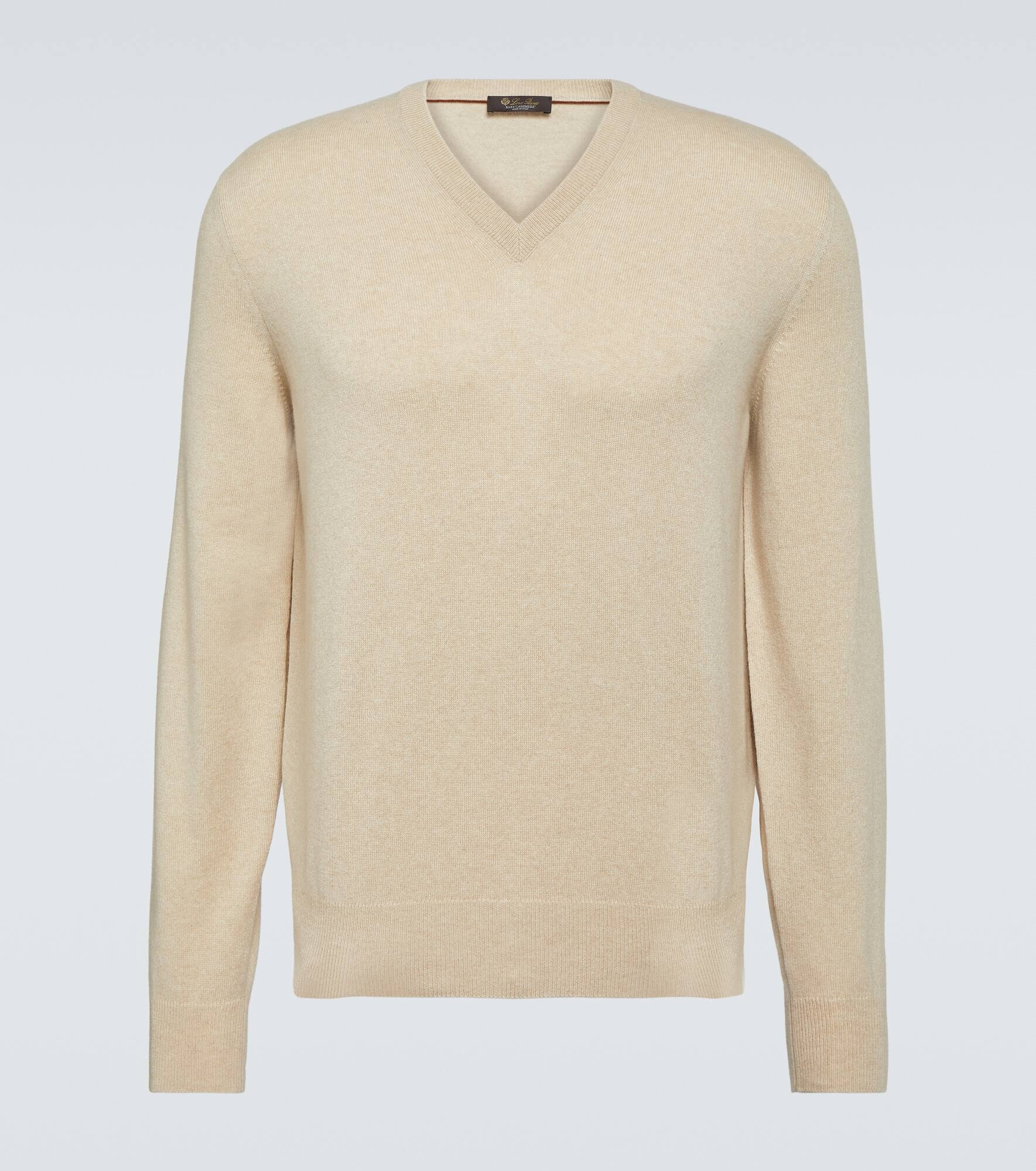 Achieving unparalleled softness, Loro Piana’s baby cashmere is exclusively sourced from Hircus goats in Mongolia. This classic sweater has a casual fit with a V-neckline and softly ribbed trims. Product Details - Material: 100% baby cashmere - Care instructions: hand wash - Made in Italy - Designer color name: Natural Melange - Item number: P00823407 Size & Fit - True to size - Straight fit - Mid-weight material - Falls to the hip - The model in the picture is 185cm-6'1" and wearing a size IT 48