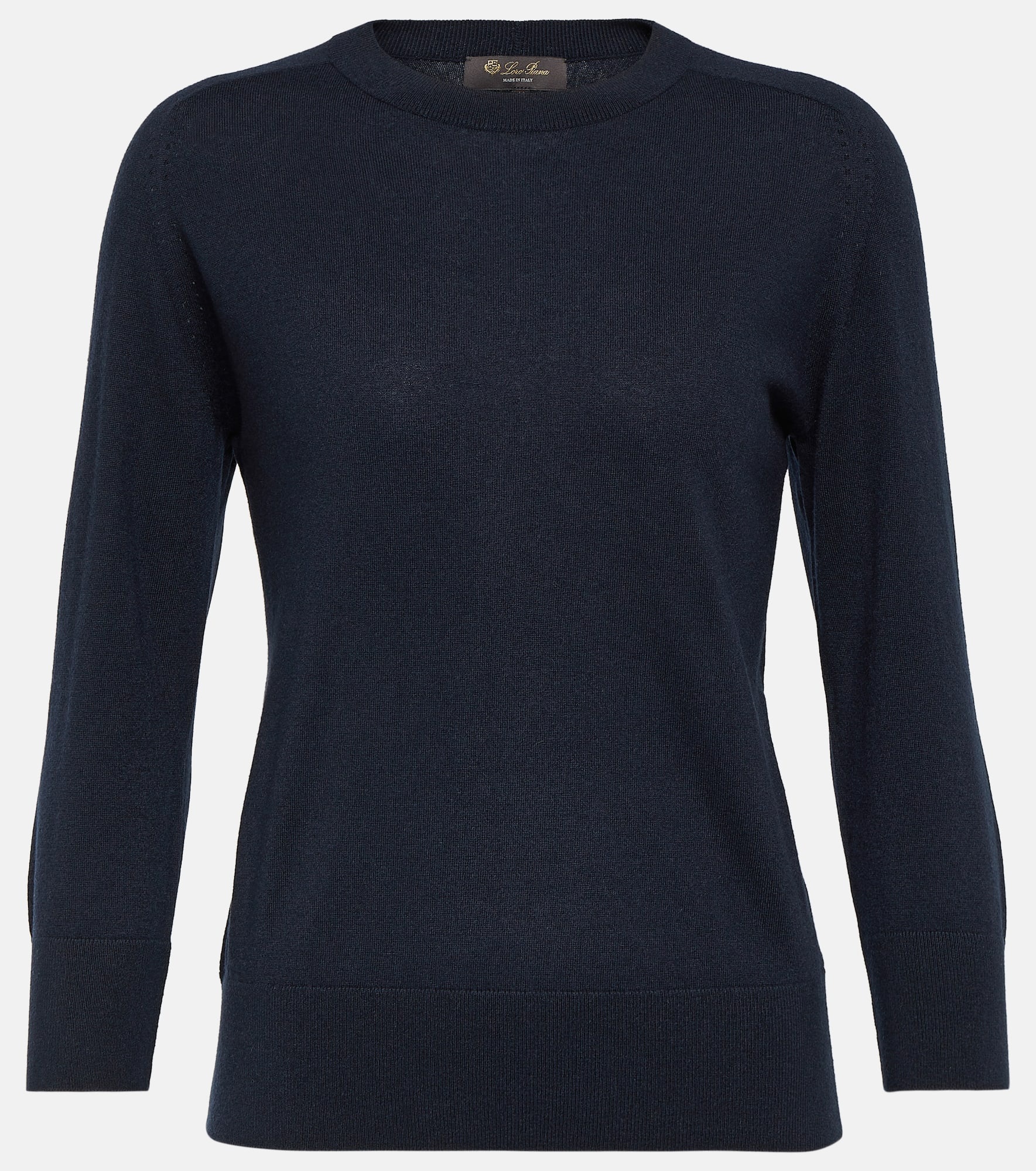 Every Loro Piana design combines the best of Italian craftsmanship with the finest raw materials. Boasting a lightweight texture with pointelle-knit shoulders, this navy cashmere sweater has a round-neck fit and fitted trims. Product Details - Material: 100% cashmere - Made in Italy - Care instructions: hand wash - Designer color name: Navy - Item number: P00775642 Size & Fit - True to size - Straight fit - Stretchy fabric - Falls to the hip - The model seen in the picture is 178cm-5'10" and wearing a size IT 40