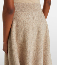 Exude timeless elegance in this midi skirt from Loro Piana. The piece is crafted from a soft blend of cashmere, wool, and linen, with an elasticated drawstring waistband. Product Details - Material: 51% cashmere, 40% wool, 9% linen - Care instructions: dry clean - Made in Italy - Color: beige - Designer color name: Quinoa Cream Bianco - Details: 68% cashmere, 14% polyamide, 12% linen, 6% elastane - Elasticated drawstring waist - Item number: P01130392 Size & Fit - True to size - Elasticated waist - Slightly stretchy fabric - The model seen in the picture is 178cm-5'10" and wearing a size XS