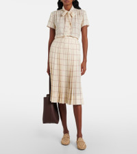 Every Loro Piana design combines the best of Italian craftsmanship with the finest raw materials. The Clea midi skirt is made from silk sable and features a checked print and pleat details. Product Details - Material: 100% silk - Care instructions: dry clean - Made in Italy - Designer color name: Chalk/Pecan Syrup - Item color: beige - Closure: zipper fastening - Pockets: side slit pockets - Item number: P01011808 Size & Fit - True to size - Non-stretchy fabric - The model seen in the picture is 178cm-5'10" and wearing a size IT 40