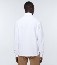 Expertly woven from cotton in Italy, this white Loro Piana polo sweater has long sleeves, a three-button placket, and a ribbed collar, hem, and cuffs. Product Details - Details: 2% elastane, 98% cotton - Made in Italy - Care instructions: machine wash at 30 degrees - Designer color name: Optical White - Closure: partially buttoned front - Buttoned cuffs - Material: 100% cotton - Item number: P00670417 Size & Fit - True to size - Straight fit - Mid-weight material - Falls below the hip - The model in the picture is 185cm-6'1" and wearing a size M