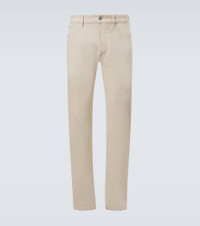 Product Details - Material: 99% cotton, 1% elastane - Care instructions: machine wash at 30 degrees - Made in Italy - Designer color name: Beige - Item color: beige - Details: 100% calf leather - Lining: 65% polyester, 35% cotton - Item number: P01069082 Size & Fit - Fits small to size - we recommend trying one size larger - Non-stretchy fabric - Straight leg - Mid-rise - The model in the picture is 185cm-6'1" and wearing a size 33