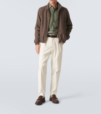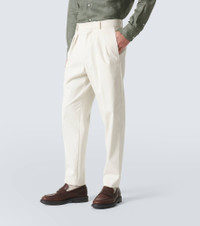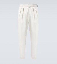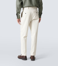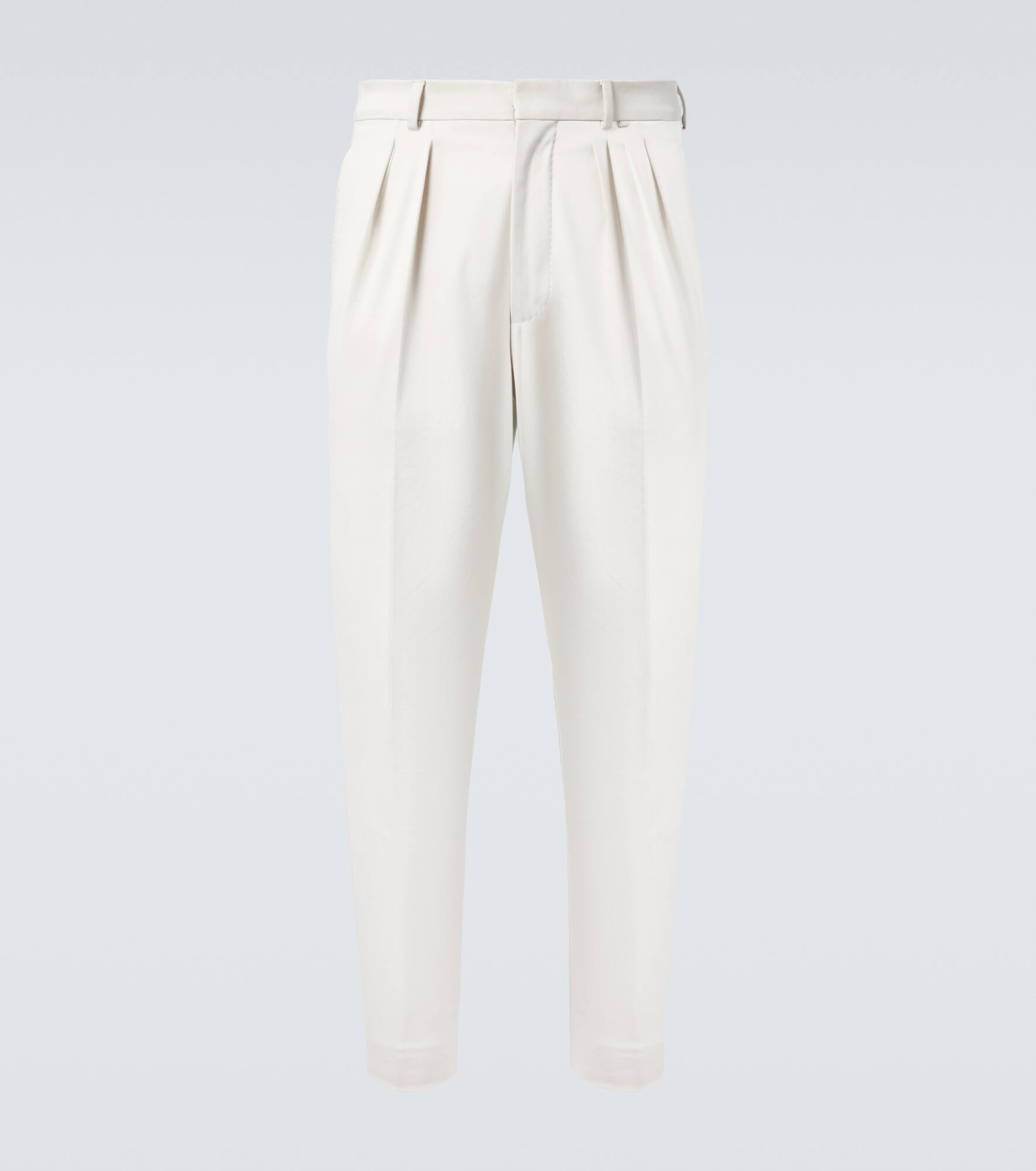 Every Loro Piana design combines the best of Italian craftsmanship with the finest raw materials. These pants are crafted from cotton, have straight legs, and are complete with classic pleating. Product Details - Material: 98% cotton, 2% elastane - Care instructions: machine wash at 30 degrees - Made in Italy - Designer color name: Arctic Wolf - Closure: zip, hook, and button fastening - Pockets: side slit pockets, back pockets - Belt loops - Pocket lining: 66% cotton, 34% modal - Item number: P01008175 Size & Fit - True to size - Non-stretchy fabric - Straight leg - The model in the picture is 185cm-6'1" and wearing a size 48