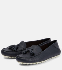 Made from grained leather, Loro Piana’s Dot Sole moccasins feature tassel trims adorned with brand-signature My Charms. Lightweight and flexible, they’re finished with foldable heels and logo-embossed pebbled soles. Product Details - Lining: leather - Sole: leather insole, rubber sole - Toe shape: square toe - Upper: leather - Comes with dust bags - Designer color name: Blue Navy - Comes with a box - Made in Italy - Item number: P00775011 Size & Fit - Fits slightly large to size - we recommend trying a half size smaller - Slightly wide - European sizes