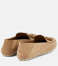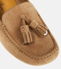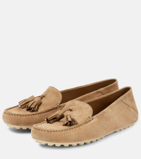 Loro Piana’s Dot Sole moccasins are made from tactile suede and feature tassel trims adorned by brand-signature My Charms. Lightweight and flexible, they’re finished with soft heel counters and logo-embossed pebbled soles. Product Details - Sole: leather insole, rubber sole - Toe shape: almond toe - Upper: leather - Comes with dust bags - Comes with a box - Made in Italy - Item number: P00810765 Size & Fit - Fits slightly large to size - we recommend trying a half size smaller - Slightly wide - European sizes
