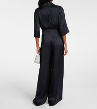 Product Details - Material: 100% silk - Care instructions: dry clean - Made in Italy - Designer color name: Blue Navy - Item number: P00956690 Size & Fit - True to size - Non-stretchy fabric - Wide-leg - High-waisted - Unhemmed for tailoring - The model seen in the picture is 178cm-5'10" and wearing a size IT 40