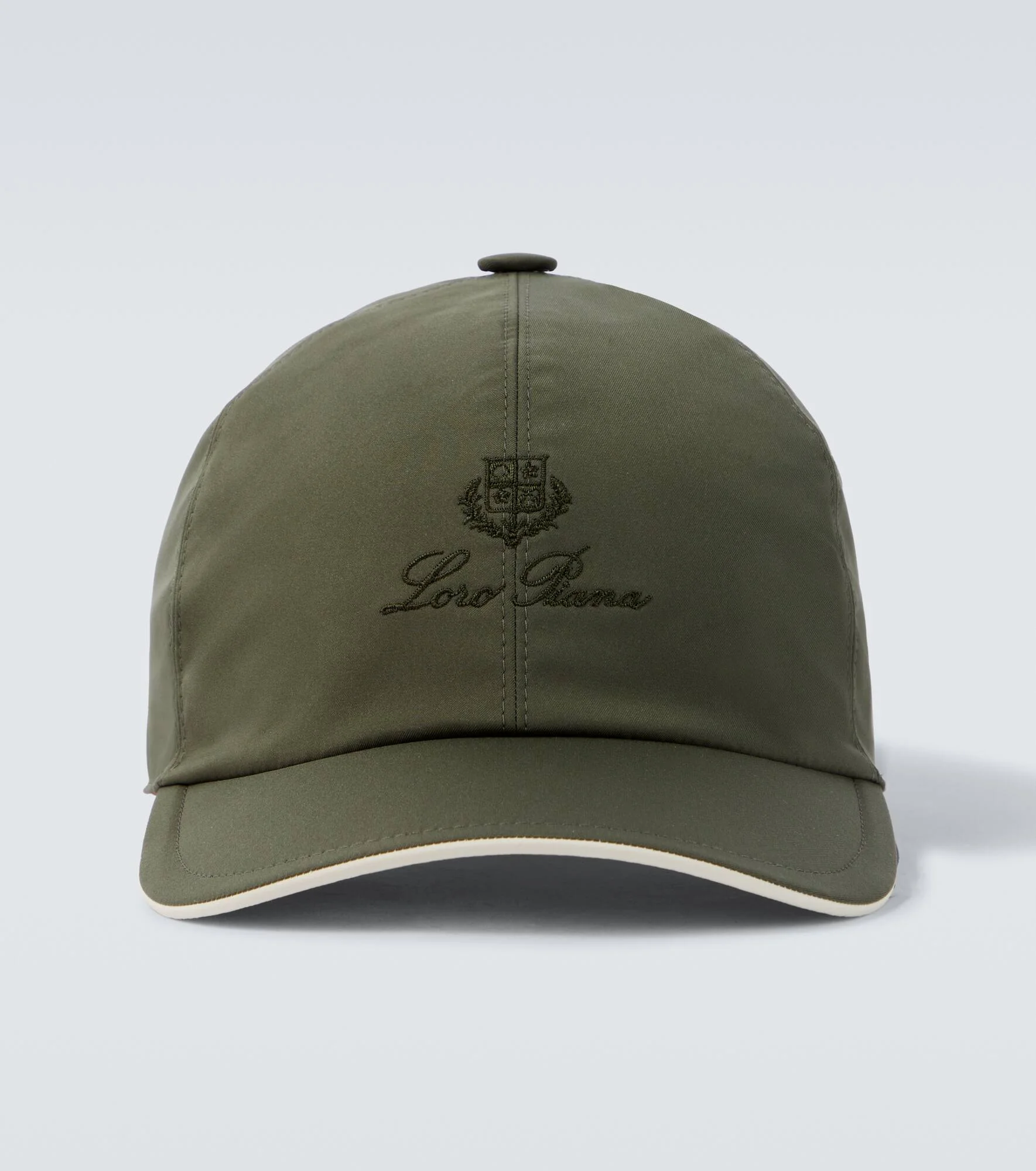 Enjoy the chic and versatile styling options offered to you by this logo-embroidered baseball cap. This style is made with Loro Piana's Storm System® treatment for a waterproof and wind-resistant finish. Product Details - Material: 100% polyamide - Care instructions: dry clean - Made in Italy - Color: green - Designer color name: Midnight Garden/Ivory - Item color: green, white - Lining: 64% cotton, 36% polyester - Material II: 100% polyurethane - Details: 60% cotton, 40% acetate - Item number: P01138959 Size & Fit - Adjustable size - Circumference size S 54cm-21.5" - Circumference size M 56cm-22" - Circumference size L 58cm-23" - Elasticated band - Circumference size XL 60cm-23.5" - Length of visor 7,5cm-3"