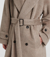 Product Details - Material: 75% alpaca wool, 25% wool - Care instructions: dry clean - Made in Italy - Designer color name: Lotus Pod - Lining: 100% silk - Details: 100% calf leather - Detachable belt - Pockets: side slit pockets - Closure: buttoned front - Cuff: one button - Item number: P01011601 Size & Fit - True to size - Loose fit, comes with belt - Non-stretchy fabric - The model seen in the picture is 178cm-5'10" and wearing a size IT 40