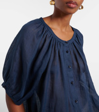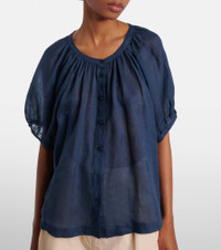 Crafted from ultra-lightweight ramie, the Gritt shirt from Loro Piana features a relaxed silhouette with charming puffed sleeves. The design is complete with a buttoned front for an effortlessly sophisticated finish. Product Details - Material: 100% ramie - Care instructions: machine wash at 30 degrees - Made in Italy - Designer color name: Crown Blue - Item color: blue - Closure: buttoned front - Item number: P01060893 Size & Fit - True to size - Designed for a loose fit - Falls to the hip - The model seen in the picture is 178cm-5'10" and wearing a size IT 40