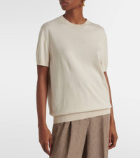 Every Loro Piana design combines the best of Italian craftsmanship with the finest raw materials. Showcasing the brand's affinity for timeless staples, the Ice Wish top is primed for effortlessly refined warm-weather looks. Knitted from ultra-soft cotton, the short-sleeved style is completed with a round neckline and ribbed trims. Product Details - Material: 100% cotton - Care instructions: hand wash - Made in Italy - Designer color name: Winter Sand - Item color: beige - Item number: P01011798 Size & Fit - True to size - Designed for a loose fit - Stretchy fabric - Falls to the hip - The model seen in the picture is 178cm-5'10" and wearing a size IT 40