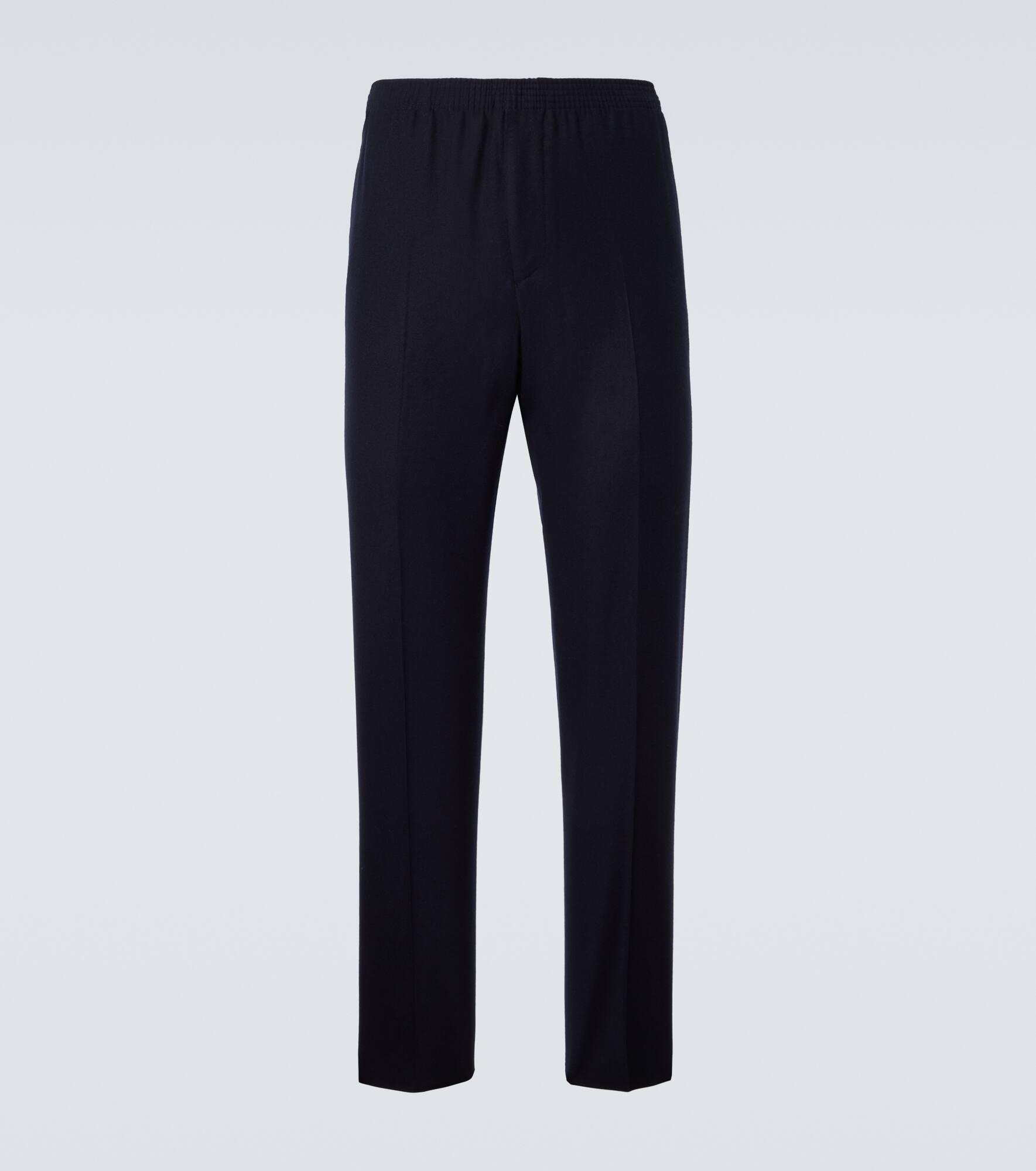 Product Details - Material: 93% wool, 7% cashmere - Care instructions: do not wash - Made in Italy - Designer color name: China Blue Mel - Lining: 60% acetate, 40% viscose - Elasticated waistband - Pockets: side slit pockets, back pockets - Item number: P00951157 Size & Fit - True to size - Elasticated waist - Non-stretchy fabric - Straight leg - Unhemmed for tailoring - The model in the picture is 185cm-6'1" and wearing a size 48