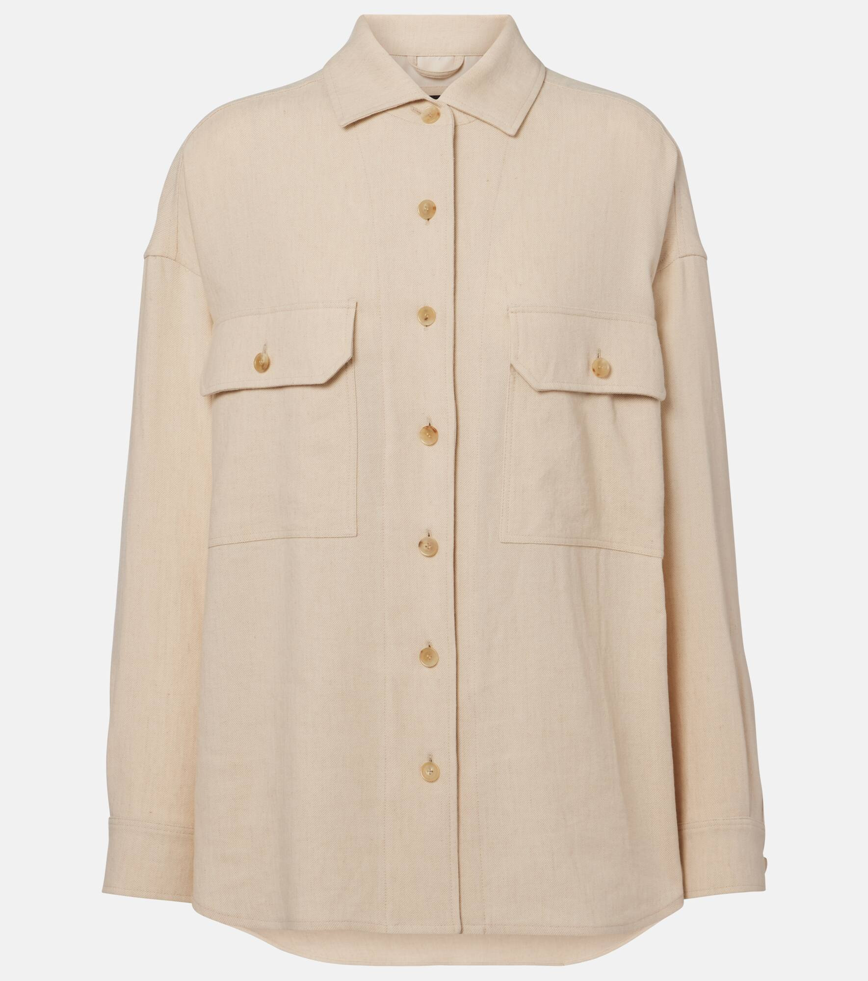 Every Loro Piana design combines the best of Italian craftsmanship with the finest raw materials. Crafted from linen and wool, this shirt features a relaxed fit complemented by a polo collar buttoned front pockets. Product Details - Material: 52% linen, 48% wool - Care instructions: dry clean - Made in Italy - Designer color name: Natural Melange - Item color: beige - Lining: 100% silk - Closure: buttoned front - Collar: spread - Pockets: flap chest pockets - Item number: P01069524 Size & Fit - True to size - Dropped shoulders - Designed for a loose fit - Non-stretchy fabric - Falls below the hip - The model seen in the picture is 178cm-5'10" and wearing a size IT 40