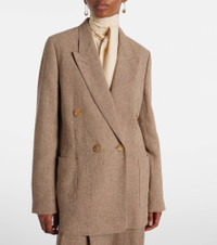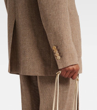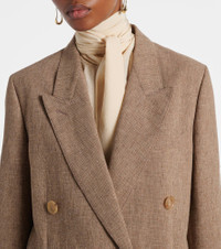 Product Details - Material: 100% linen - Care instructions: dry clean - Made in Italy - Designer color name: Dark Truffle/Brown - Item color: brown - Lining: 100% silk - Peak lapel - Closure: double-breasted - Pockets: breast pocket, patch pockets - Cuff: four buttons - Vent: single - Item number: P01069526 Size & Fit - True to size - Shoulder pad inserts - Designed for a loose fit - Non-stretchy fabric - Falls below the hip - The model seen in the picture is 178cm-5'10" and wearing a size IT 40