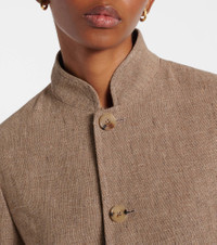 Product Details - Material: 100% linen - Care instructions: dry clean - Made in Italy - Designer color name: Dark Truffle/Brown - Item color: brown - Lining: 64% cotton, 36% polyester - Sleeve lining: 100% cupro - Closure: buttoned front - Pockets: patch pockets, internal pockets - Vent: single - Item number: P01069523 Size & Fit - True to size - Designed for a loose fit - Non-stretchy fabric - Falls below the hip - The model seen in the picture is 178cm-5'10" and wearing a size IT 40