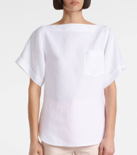 Every Loro Piana design combines the best of Italian craftsmanship with the finest raw materials. This T-shirt is made in Italy from pure linen and has a breast pocket, making it a versatile piece for everyday wear. Product Details - Material: 100% linen - Care instructions: dry clean - Made in Italy - Designer color name: White - Item color: white - Pockets: breast pocket - Item number: P01011826 Size & Fit - True to size - Straight fit - Non-stretchy fabric - Falls below the hip - The model seen in the picture is 178cm-5'10" and wearing a size IT 40