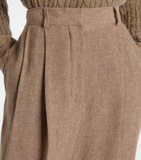 Product Details - Material: 100% linen - Care instructions: dry clean - Made in Italy - Designer color name: Dark Truffle / Brown - Item color: brown - Pocket lining: 100% silk - Contains non-textile parts of animal origin - Closure: zip, hook, and button fastening - Belt loops - Pockets: side slit pockets, back pockets - Double pleat - Unlined - Item number: P01069280 Size & Fit - True to size - Non-stretchy fabric - Wide-leg - High-waisted - The model seen in the picture is 178cm-5'10" and wearing a size IT 40