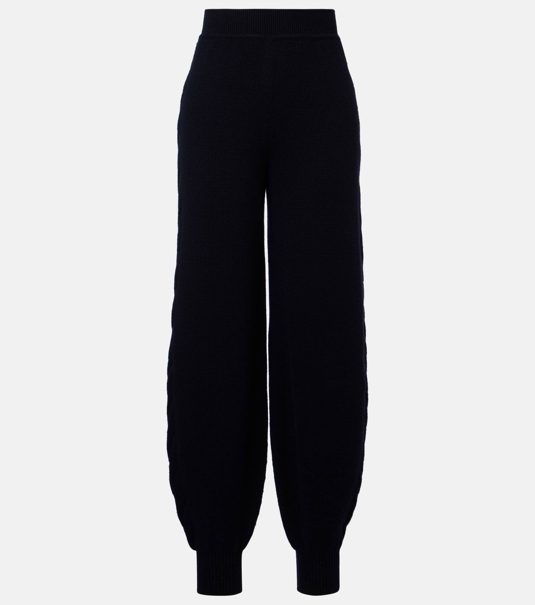 Product Details - Material: 100% cashmere - Care instructions: hand wash - Made in Italy - Designer color name: Blue Navy - Item color: blue - Trim: 80% cashmere, 14% nylon, 6% elastane - Details: 77% cashmere, 16% nylon, 7% elastane - Elasticated waistband - Elasticated ankle cuffs - Item number: P01081839 Size & Fit - True to size - Elasticated waist - Stretchy fabric - Tapered leg - High-waisted - The model seen in the picture is 178cm-5'10" and wearing a size IT 40