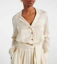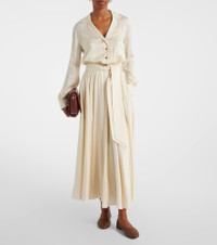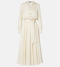 Every Loro Piana design combines the best of Italian craftsmanship with the finest raw materials. The Nevis silk shirt dress is designed with a flared skirt, long sleeves, and a self-tie belt for a cinching effect. Product Details - Material: 100% silk - Care instructions: dry clean - Made in Italy - Designer color name: Creamy Vanilla - Item color: white - Collar: classic (Straight point) - Closure: partially buttoned front - Elasticated waistband - Cuff: buttoned - Sleeves: long-sleeved - Separate lining slip: 100% silk - Item number: P01069289 Size & Fit - True to size - Dropped shoulders - Cinched waist - Elasticated waist - Non-stretchy fabric - The model seen in the picture is 178cm-5'10" and wearing a size IT 40