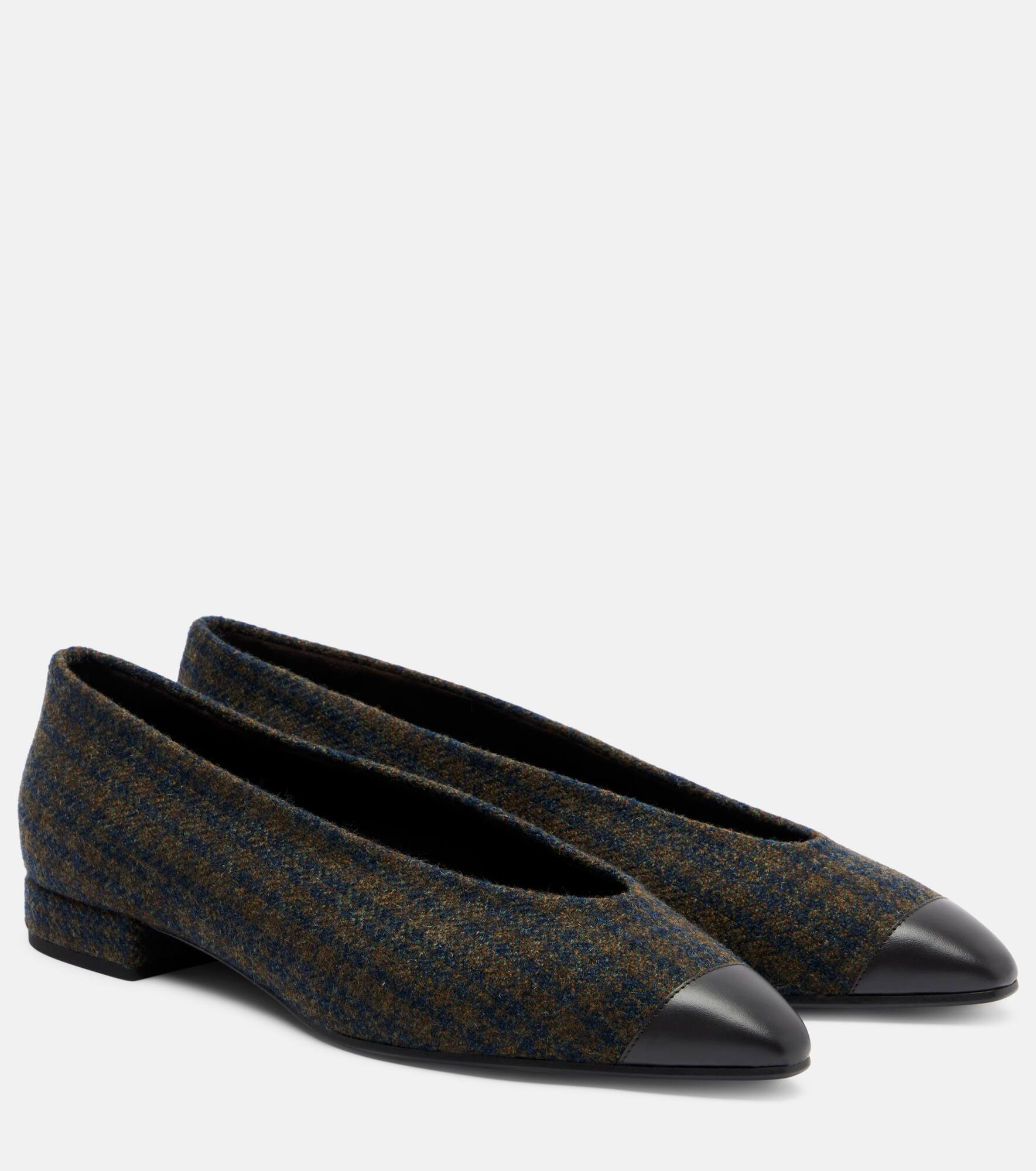 Rebecca leather-trimmed tweed ballet flats