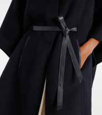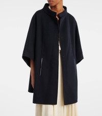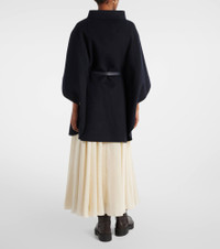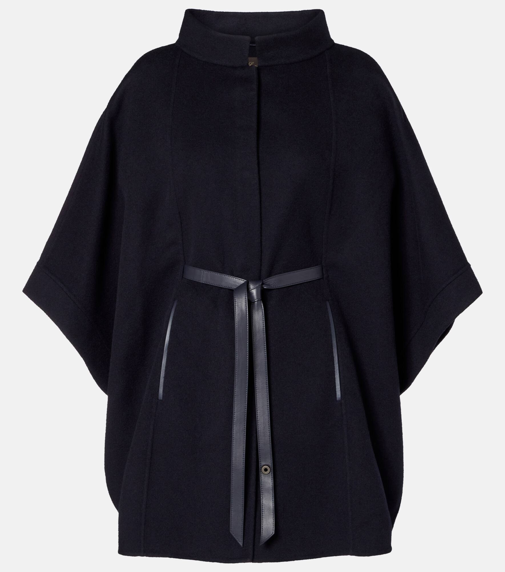 Loro Piana's designs reflect the brand's care for artisanal traditions and premium materials. Crafted from pure cashmere, the Salzburg cape is an exquisite layering option and is finished with a leather self-tie belt at the waist. Product Details - Material: 100% cashmere - Care instructions: dry clean - Made in Italy - Designer color name: Blue Navy - Item color: blue - Closure: snap-buttoned front, snap-buttoned sides - Trim: 100% leather - Detachable belt - Item number: P01069568 Size & Fit - True to size - Loose fit, comes with belt - Oversized - Non-stretchy fabric - Falls below the hip - One size