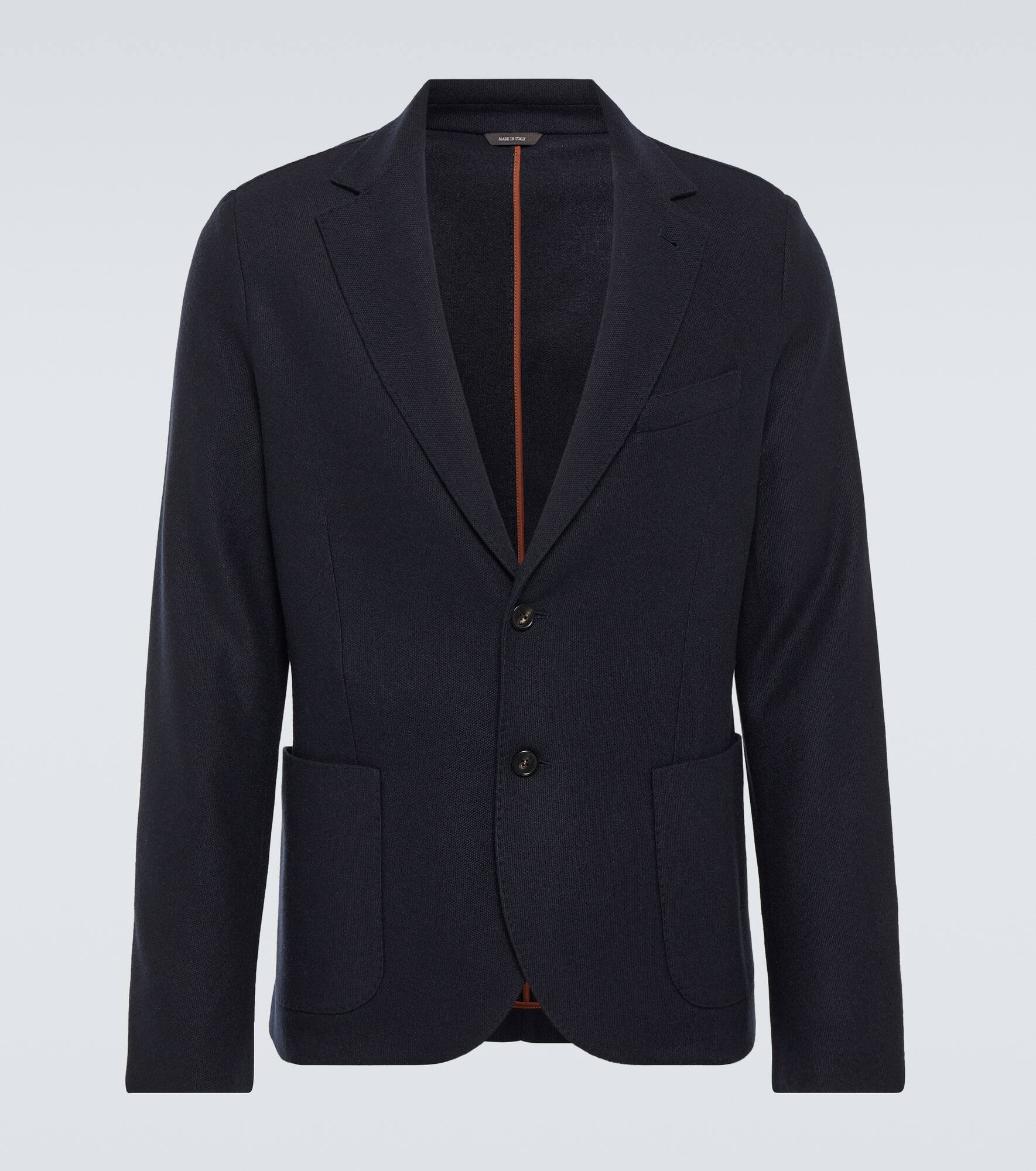 Product Details - Material: 50% silk, 50% cashmere - Vent: double - Closure: single-breasted (two buttons) - Pockets: patch pockets, angled chest pocket, internal pockets - Care instructions: dry clean - Made in Italy - Designer color name: Blue Navy - Lining: 100% cupro - Details: 100% goat leather - Blazer - Length: regular (hip-length) - Notched lapel - Item number: P00897876 Size & Fit - True to size - Slim fit - Non-stretchy fabric - Falls below the hip - The model in the picture is 185cm-6'1" and wearing a size IT 48