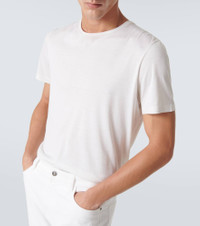 Made in Italy from a luxuriously soft, matte blend of silk and cotton, this white T-shirt from Loro Piana offers a regular fit. Product Details - Material: 60% silk, 40% cotton - Made in Italy - Care instructions: hand wash - Designer color name: Optical White - Item number: P00553171 Size & Fit - Fits small to size - we recommend trying one size larger - Designed for a loose fit - Mid-weight material - Falls to the hip - The model in the picture is 185cm-6'1" and wearing a size L