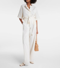 Product Details - Material: 77% cotton, 15% viscose, 3% wool, 2% linen, 2% polyester, 1% silk - Detachable belt - Belt loops - Elasticated waistband - Pockets: side slit pockets - Care instructions: dry clean - Made in Italy - Designer color name: Nougat+Gold - Lining: 100% silk - Item number: P00901687 Size & Fit - True to size - Adjustable at the waist - Non-stretchy fabric - Wide-leg - High-waisted - The model seen in the picture is 178cm-5'10" and wearing a size IT 40