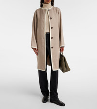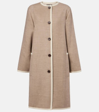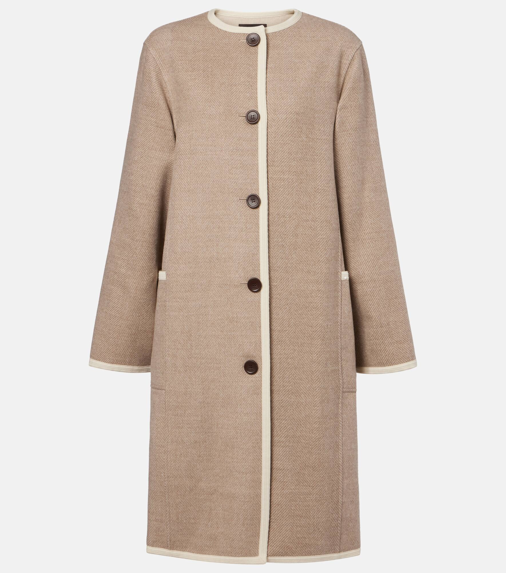 Every Loro Piana design combines the best of Italian craftsmanship with the finest raw materials. Designed with a crewneck, this coat is a sophisticated wardrobe staple with its virgin wool composition and soft cashmere trims. Product Details - Material: 100% virgin wool - Care instructions: dry clean - Made in Italy - Designer color name: Nude Beige/Linen - Item color: beige - Details: 100% calf leather - Trim: 99% cashmere, 1% wool - Contains non-textile parts of animal origin - Closure: buttoned front - Pockets: patch pockets - Item number: P01069540 Size & Fit - True to size - Designed for a loose fit - Non-stretchy fabric - The model seen in the picture is 178cm-5'10" and wearing a size IT 40