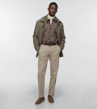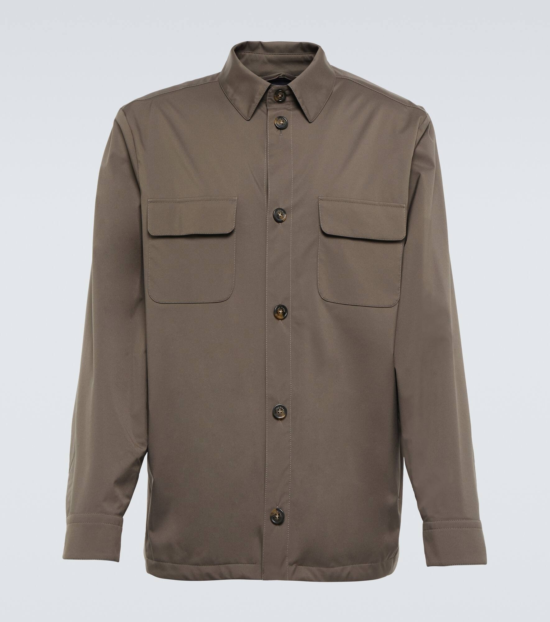 In a faded brown hue, this Loro Piana overshirt has a slightly oversized fit and is treated with the label's Storm System® technology for a wind and waterproof finish. Product Details - Other inner trims: fully lined, 100% polyurethane - Pockets: buttoned pocket, internal pockets, zipped pockets - Buttoned cuffs - Closure: buttoned front - Care instructions: dry clean - Made in Italy - Material II: 100% polyurethane - Designer color name: Army Green - Material: 100% polyamide - Sleeve lining: 100% polyamide, fully lined - Lining: 100% virgin wool, fully lined - Item number: P00670433 Size & Fit - Fits small to size - we recommend trying one size larger - Designed for a loose fit - Adjustable hem - Lightweight material - Falls to the hip - The model in the picture is 185cm-6'1" and wearing a size L