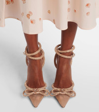 Mach & Mach's Double Bow embellishments are well-loved for their sparkle, which adds undeniable glamour to every design. Carefully crafted in Italy from mesh with leather trims, these pumps are a slingback style with 110mm heels, shimmering crystal embellishments, and pointed-toe silhouettes. Product Details - Upper: fabric, crystals - Lining: leather, fabric - Sole: leather insole and sole - Color: beige - Toe shape: pointed toe - Made in Italy - Includes: shoe box - Designer color name: Light Gold - Closure: buckle-fastening ankle strap - Hardware color: silver - Item number: P01136070 Size & Fit - True to size - European sizes - 11cm-4.5" heel