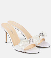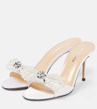 Double Bow embellished satin mules