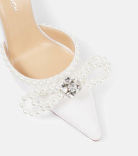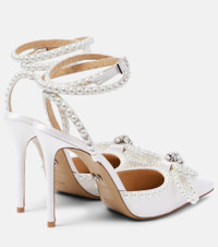 Double Bow embellished satin pumps