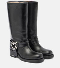 Mach & Mach has built a reputation for the most glamorous shoes thanks to crystal embellishments like the Double Heart. These embellished biker boots are crafted from supple leather and boast a classic round-toe silhouette. Product Details - Upper: calf leather - Lining: leather - Sole: leather insole, leather and rubber sole - Toe shape: round toe - Made in Italy - Includes: shoe box, dust bag - Designer color name: Black - Item color: black - Hardware color: silver - Item number: P01044019 Size & Fit - True to size - European sizes - 5cm-2" heel (size EU 38) - 2,5cm-1" platform (size EU 38) - 31cm-12" shaft height (size EU 38) - 38cm-15" shaft width (size EU 38) - shaft width measured on largest part of boot