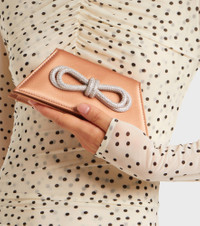 Elevate any ensemble with the Samantha Small shoulder bag from Mach & Mach. Expertly crafted in Italy from satin, this standout accessory is defined by a glamorous silver-toned Double-Bow embellishment at the front and structured top handles. Product Details - Material: satin - Lining: fabric - Made in Italy - Designer color name: Golden Brown - Item color: brown - Hardware color: silver - Detachable top handle, Detachable shoulder strap - Internal details: internal slot pocket, single compartment - Closure: magnetic fastening - Includes: dust bag, box - Item number: P01038620 Size & Fit - Height 8cm-3" - Width 18,5cm-7.5" - Depth 4cm-1.5" - Length of handles 32cm-12.5" - Adjustable shoulder strap - Min. length shoulder strap 95cm-37.5" - Max. length shoulder strap 113cm-44.5"