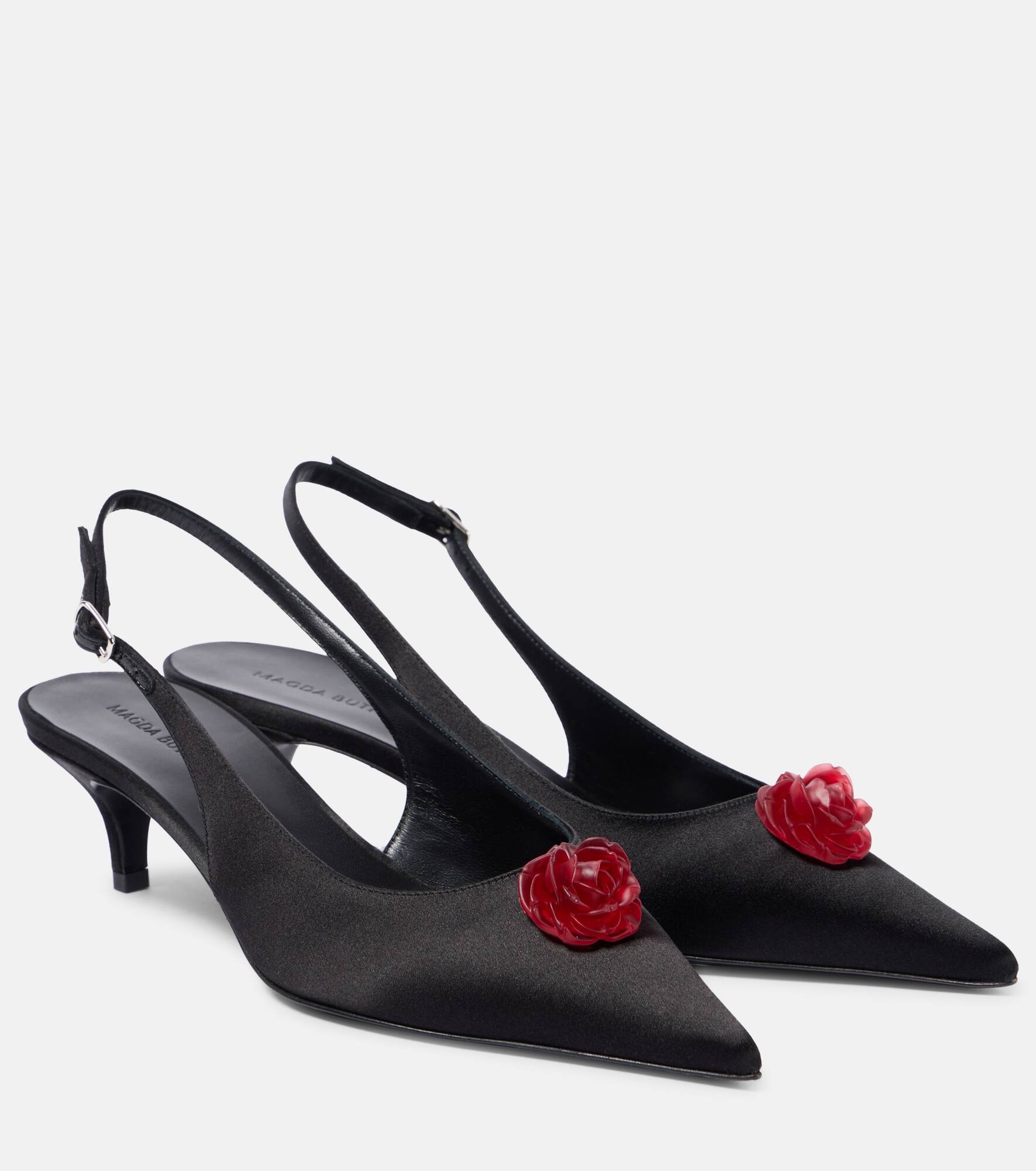 Product Details - Upper: fabric - Lining: leather - Sole: leather insole and sole - Toe shape: pointed toe - Made in Italy - Includes: shoe box, dust bag, extra heel tips - Designer color name: Red - Hardware color: silver - Closure: buckle-fastening ankle strap - Item number: P01014859 Size & Fit - Fits slightly large to size - we recommend trying a half size smaller - European sizes - 4,5cm-2" heel (size EU 38)