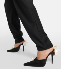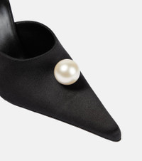 Turn to Magda Butrym for whimsical and elegant designs, such as these satin mules. The pointed-toe style is defined by a contrasting floral appliqué at the heel and a lustrous faux-pearl embellishment. Product Details - Upper: fabric - Sole: leather insole and sole - Toe shape: pointed toe - Comes with dust bags - Designer color name: Black - Comes with a box - Made in Italy - Item number: P00818191 Size & Fit - Fits slightly small to size - we recommend trying a half size larger - European sizes - 11cm-4.5" heel (size EU 38)