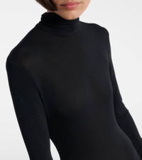 Magda Butrym aims to empower with sharp modern style, expertly delivered through artisanal excellence. This turtleneck dress arrives at a floor length with a pleated skirt featuring an asymmetric scooped hem. Product Details - Material: 71% viscose, 17% polyamide, 7% other fibres, 5% elastane - Care instructions: dry clean - Made in Poland - Designer color name: Black - Item color: black - Closure: invisible zipper - Collar: turtleneck - Item number: P01086749 Size & Fit - True to size - Fitted bodice, loose skirt - Stretchy fabric - Height of model is 175cm-69" and wears a size FR 36
