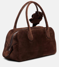 Shaking up the industry with its biting modernity and artisanal excellence, Magda Butrym exists to empower. Crafted from suede, the Brigitte Small shoulder bag comes with two top handles and features signature floral-applique detailing. Product Details - Material: leather (suede) - Lining: fabric, leather - Made in Italy - Designer color name: Brown - Item color: brown - Internal details: internal slot pocket - Closure: two-way zipped top - Top handles - Item number: P01045532 Size & Fit - Height 17cm-6.5" - Width 33cm-13" - Depth 12,5cm-5" - Length of handles 46cm-18"