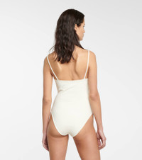 Magda Butrym's alluring aesthetic is channeled into swimwear with this retro-informed bustier swimsuit. In timeless cream white, it's defined by molded cups – a nod to the label's sculptural ready-to-wear line – that are underwired for optimum support. High-cut openings elongate the legs on spa days or destination retreats alike. Product Details - Made in Italy - Care instructions: machine wash at 30 degrees - Material: 28% elastane, 72% polyamide - Designer color name: Cream - Item number: P00552965 Size & Fit - True to size - Cup size: C - Padded, underwired top - Medium-cut leg - The model seen in the picture is 178cm-5'10", cup size B, and wearing a size FR 36