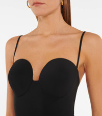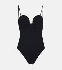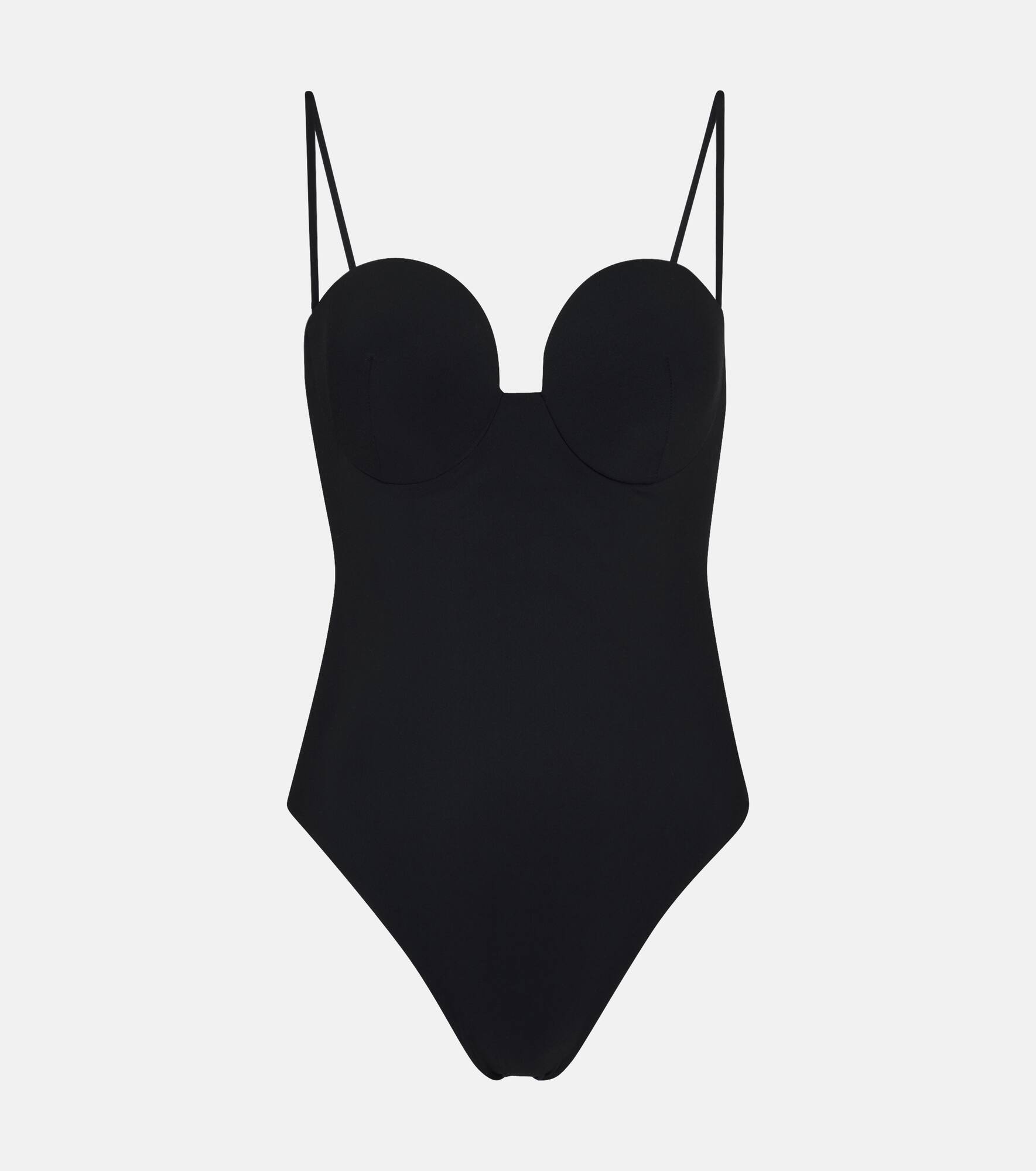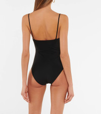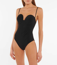 This black swimsuit from Magda Butrym is an alluring poolside staple, designed to accentuate the female form. Made in Italy from technical stretch jersey, it has slender shoulder straps, molded cups, and a low-cut back. Product Details - Made in Italy - Care instructions: machine wash at 30 degrees - Padded cups - Designer color name: Black - Material: 28% elastane, 72% polyamide - Item number: P00552955 Size & Fit - True to size - Padded, underwired top - Medium-cut leg - The model seen in the picture is 178cm-5'10", cup size B, and wearing a size FR 36