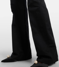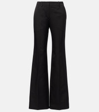Shaking up the industry with its biting modernity and artisanal excellence, Magda Butrym exists to empower. These cotton and silk flared pants feature slit and buttoned pockets, plus a tailored front with zip, button, and hook fastening. Product Details - Material: 51% cotton, 49% silk - Care instructions: dry clean - Made in Poland - Designer color name: Black - Item color: black - Lining: 100% silk - Fully lined - Closure: zipper fly, button and hook fastenings - Belt loops - Pockets: slit pockets, buttoned pockets - Item number: P01083380 Size & Fit - True to size - Non-stretchy fabric - Slim-leg with a flared hem - Sits low on the hips - The model seen in the picture is 178cm-5'10" and wearing a size FR 36