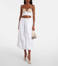 This midi skirt from Magda Butrym is primed for effortlessly elegant ensembles. Made from breathable and lightweight cotton, this style is complete with a crochet trim at the waistband. Product Details - Material: 100% cotton - Care instructions: dry clean - Made in Poland - Designer color name: White - Item color: white - Hem: elasticated - Closure: zipped side - Lining: 100% silk - Item number: P01066048 Size & Fit - True to size - Non-stretchy fabric - Sits low on the hips - The model seen in the picture is 178cm-5'10" and wearing a size FR 36