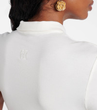 Shaking up the industry with its biting modernity and artisanal excellence, Magda Butrym exists to empower. This sophisticated bodysuit is made from soft cotton-blend jersey and features crochet trims at the legs for a signature finish. Product Details - Material: 95% cotton (organic), 5% elastane - Care instructions: dry clean - Made in Poland - Designer color name: Cream - Item color: white - Trim: 100% cotton - Closure: buttoned placket, snap-buttoned fastenings - Collar: classic (Straight point) - Item number: P01083286 Size & Fit - True to size - Semi-sheer - Fitted - Stretchy fabric - Medium-cut leg - The model seen in the picture is 178cm-5'10" and wearing a size FR 36