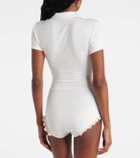 Lace-detail polo bodysuit in cream