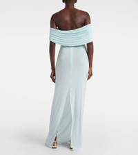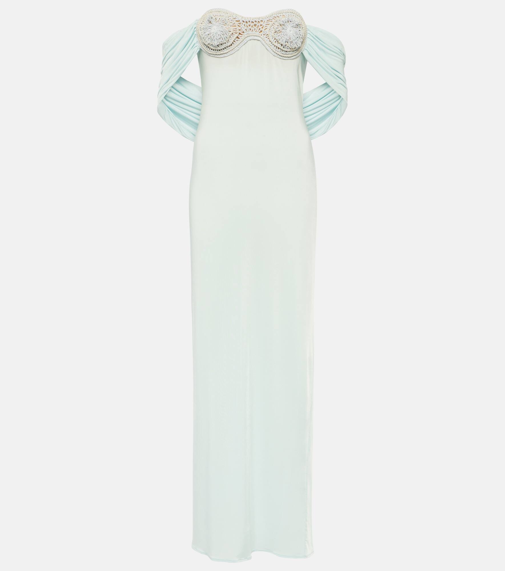Crochet-trimmed off-shoulder maxi dress