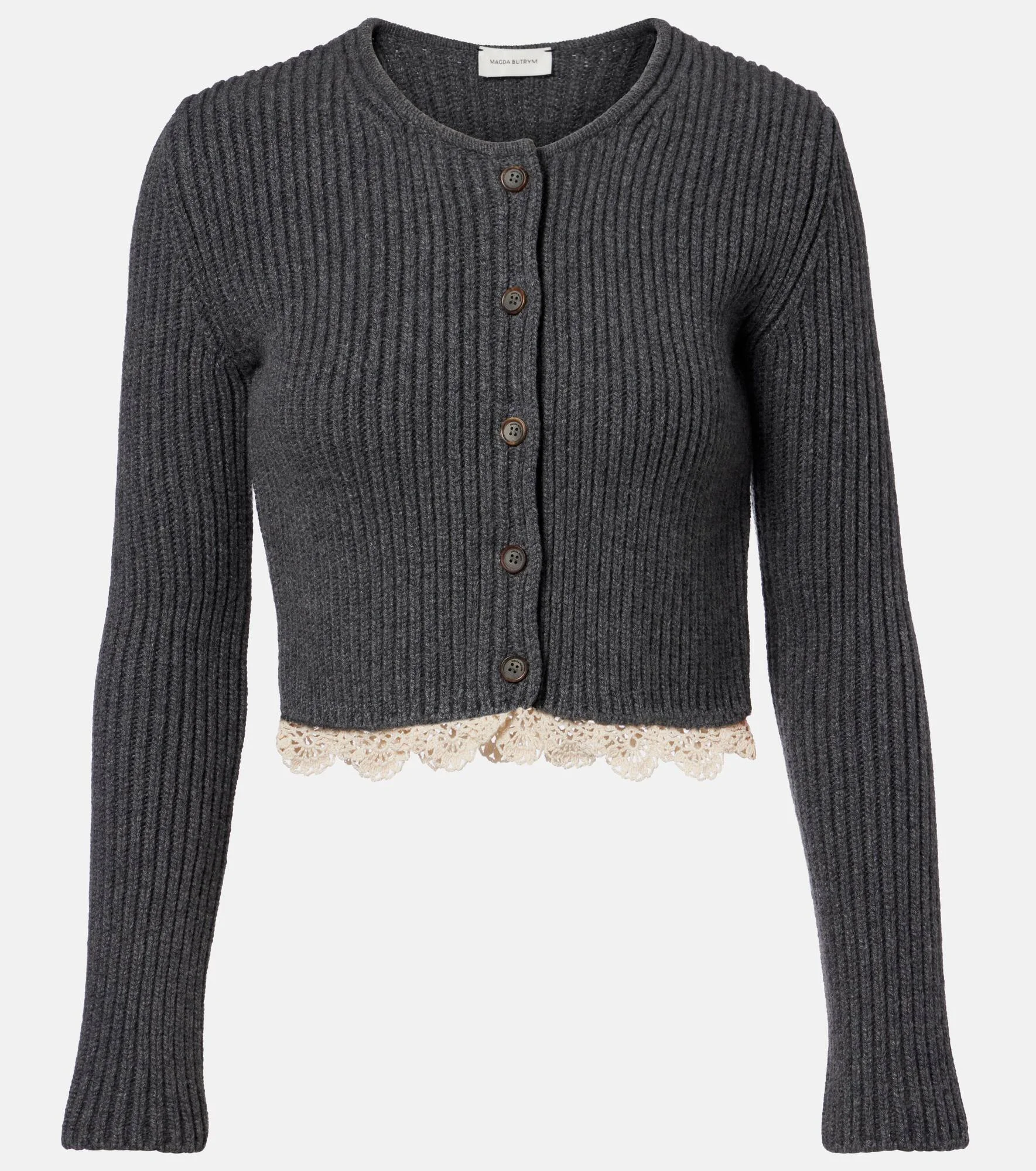 Your knitwear edit is not complete without elegant pieces like this cardiagan by Magda Butrym. Knitted from cashmere, the grey style features a cropped silhouette, enriched with a delicate crochet lace trimming. Product Details - Material: 100% cashmere - Care instructions: hand wash cold - Made in Italy - Color: grey - Designer color name: Grey - Item color: gray - Details: 100% cotton - Closure: buttoned front - Item number: P01130899 Size & Fit - True to size - Cinched waist - Slightly stretchy fabric - Slightly cropped - The model seen in the picture is 178cm-5'10" and wearing a size FR 36