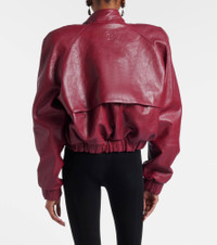 Cropped leather bomber jacket in cherry red